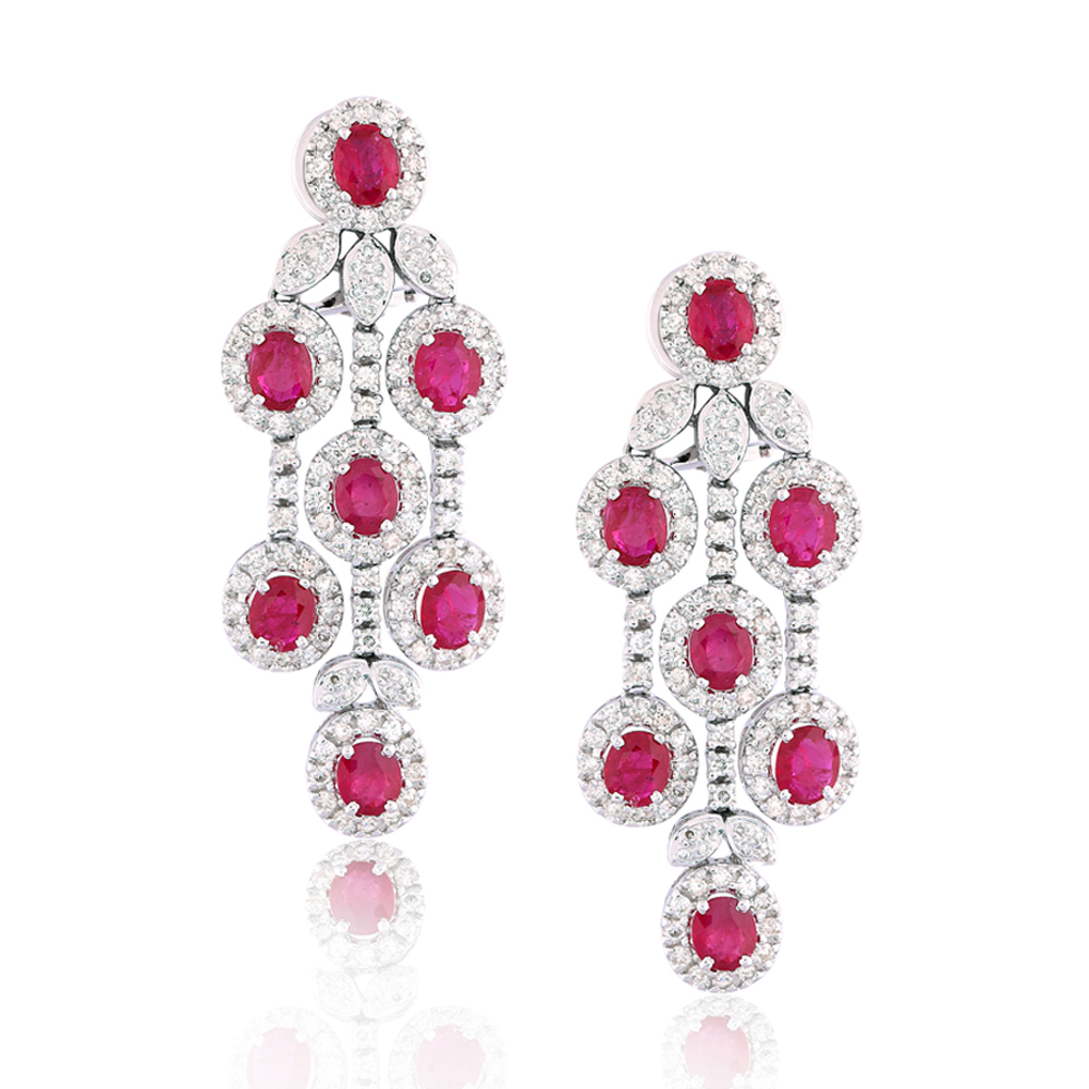 Pigeon blood red rubies have masterfully been placed between gleaming diamonds to create the magic of contrast of radiant red and white. These earrings are truly timeless!