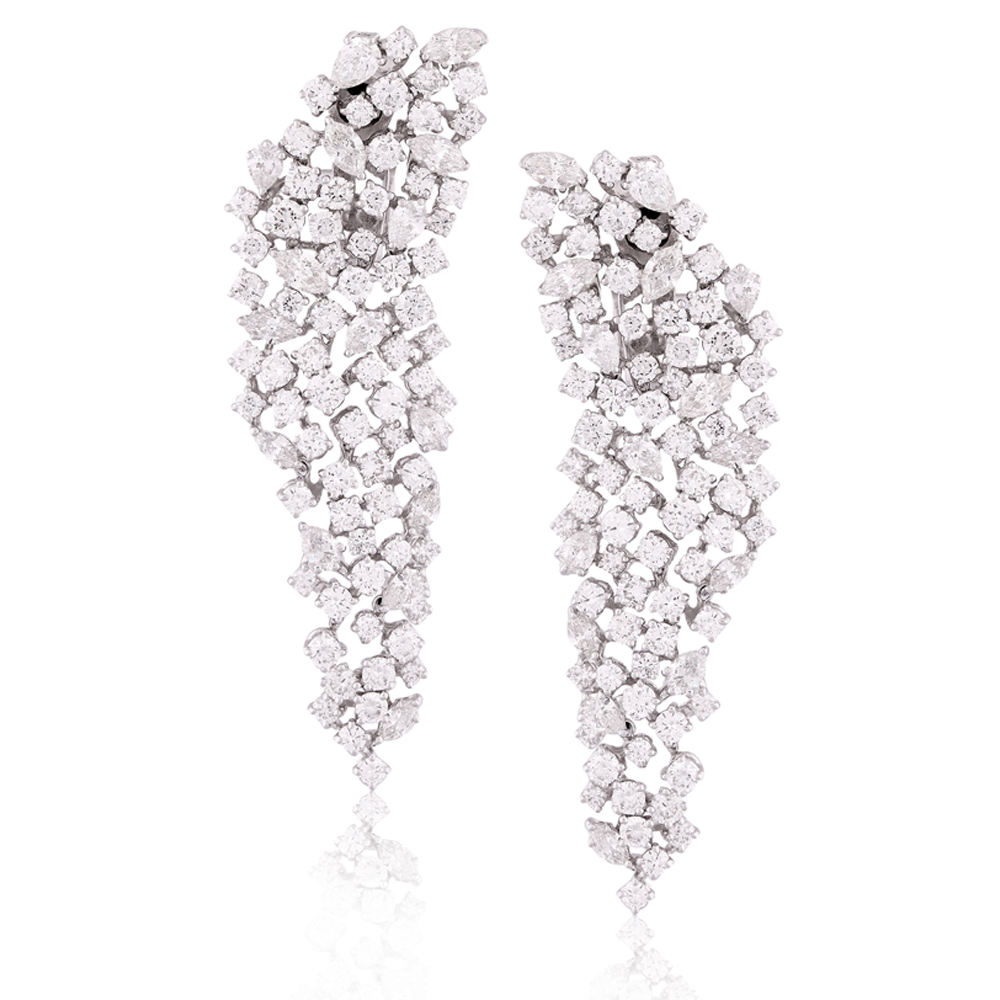 The lusciousness of quality diamonds glistens through these extraordinary earrings that personify opulence and grandeur. The intricate detailing and choicest selection of each of the diamonds placed in these earrings make them an absolute treasure.