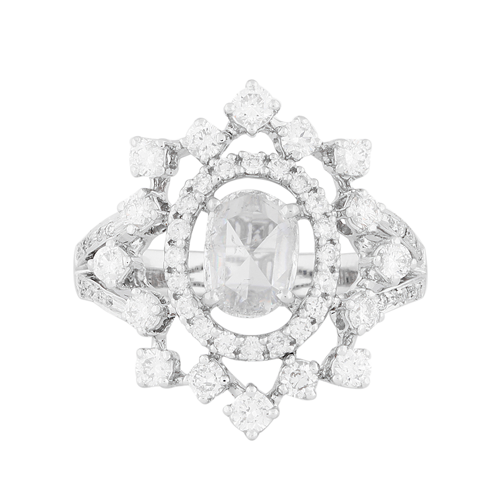 The crown jewel of the ring is the fine oval diamond placed in the centre of this radiant ornament. Cast in precious metal, the ring is truly a masterpiece designed and crafted to perfection.